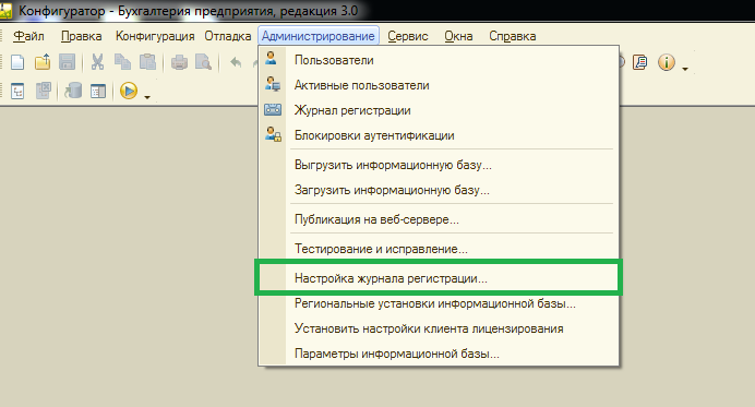 Администрирование — Настройка журнала регистрации.