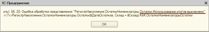 РегистрыНакопления.ОстаткиНоменклатуры.Остатки:Использование итогов выключено"
